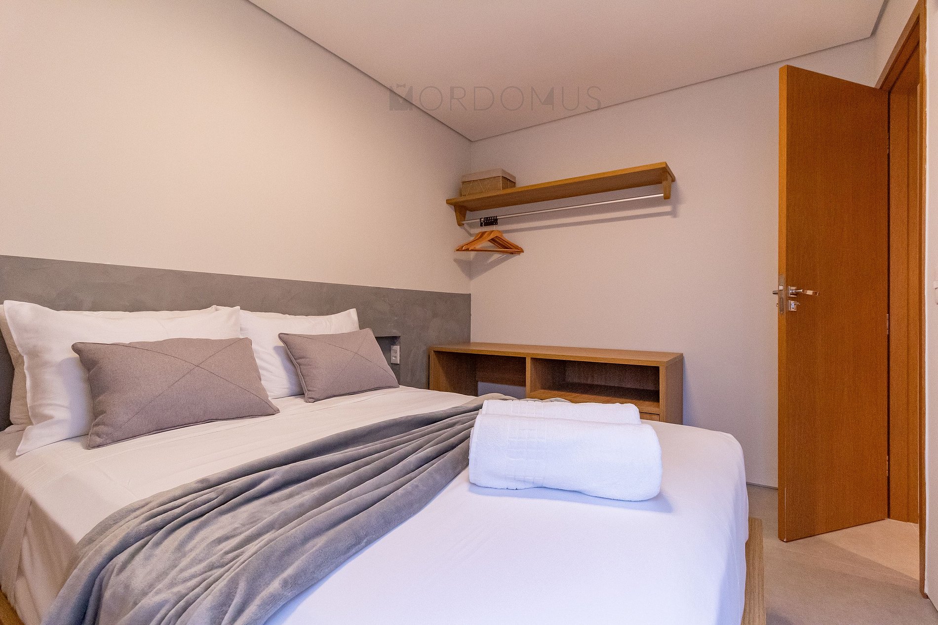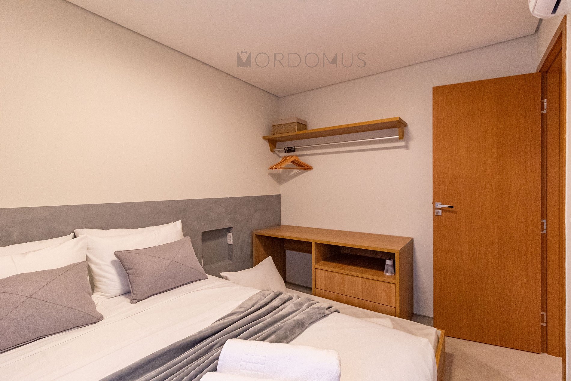 Lar Aconchego: projetada com carinho e atenção para proporcionar uma hospedagem de excelente conforto. Planejada e decorada pelo renomado estúdio GAM Arquitetos, este apartamento minimalista foi concebido com o intuito de harmonizar arquitetura e natureza, destacando a beleza do Diamantino Residence