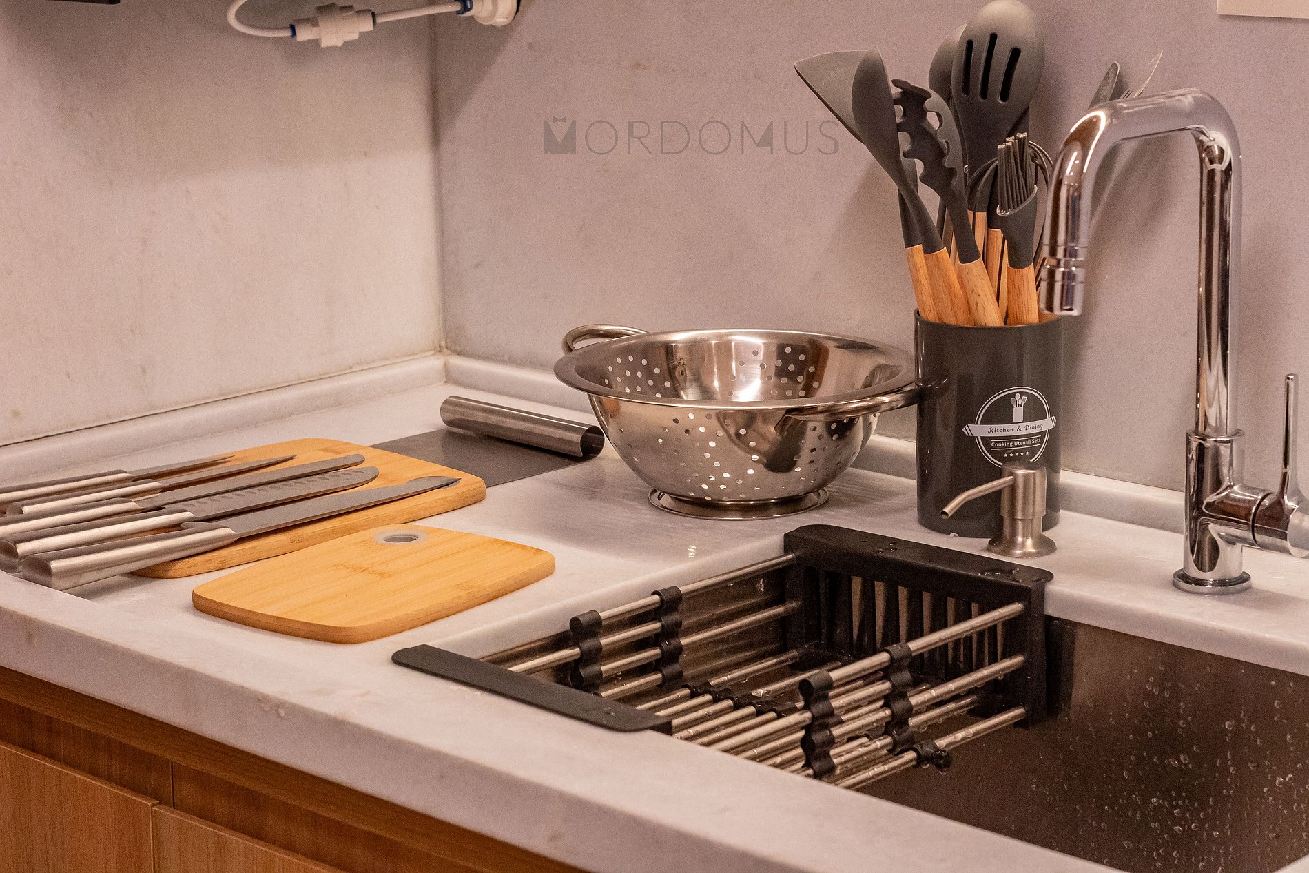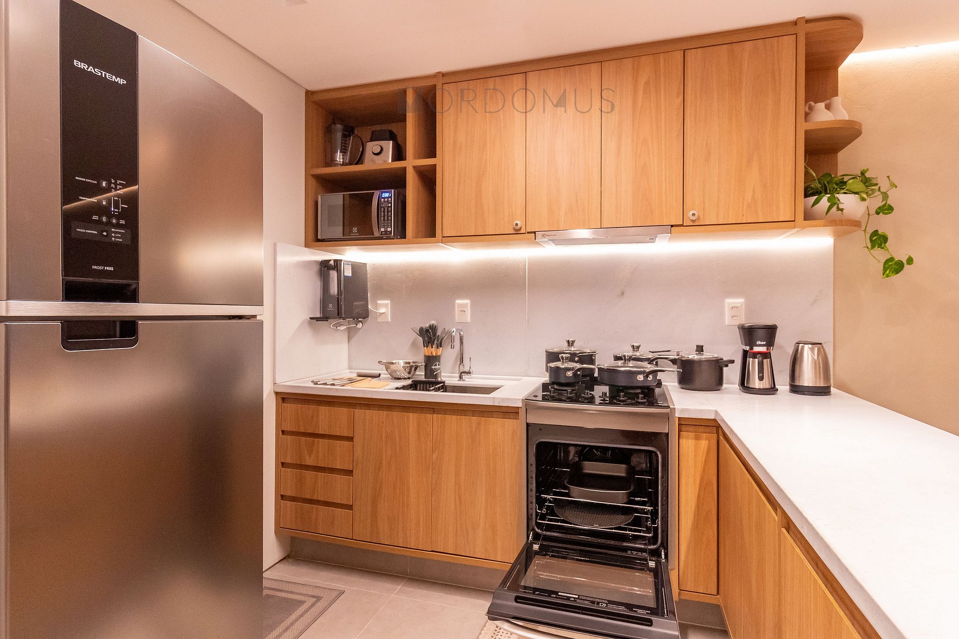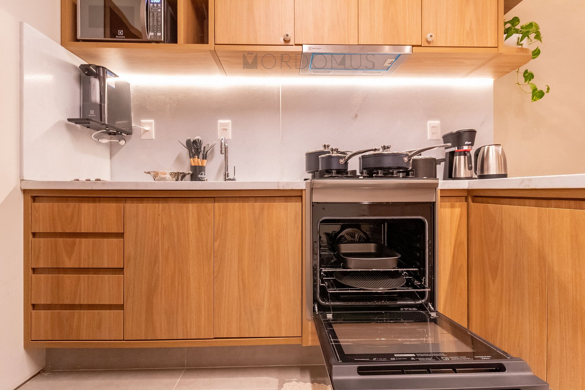 Equipamentos de Alta Qualidade: A cozinha equipada com itens como o jogo de panelas TEFAL PLATINUM e eletrodomésticos premium mostra que você se preocupa com os detalhes e com a experiência do hóspede, permitindo que eles se sintam em casa.